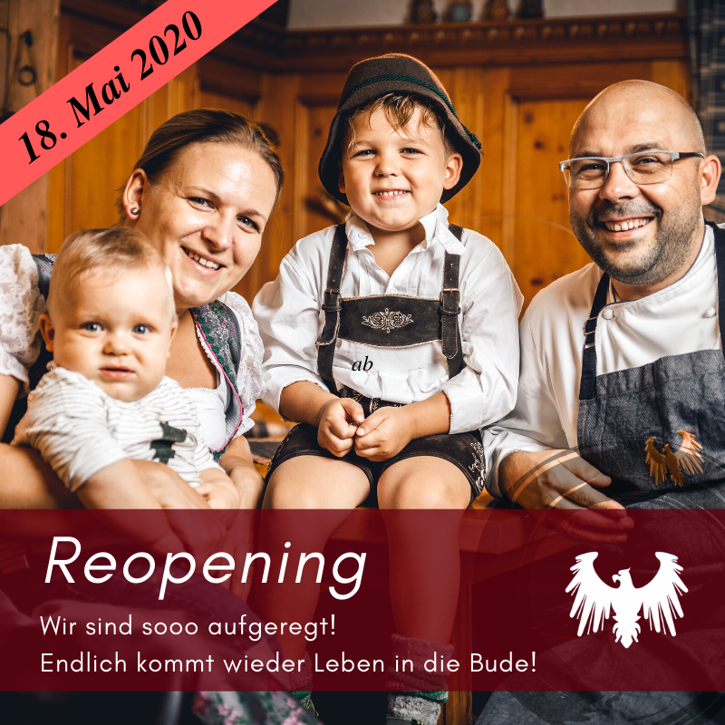 Wir sind so glücklich und dankbar, dass wir endlich wieder eure Gastgeber sein dürfen. Nach 2 Monaten lockdown gehen wir in die Phase der Wiedereröffnung.